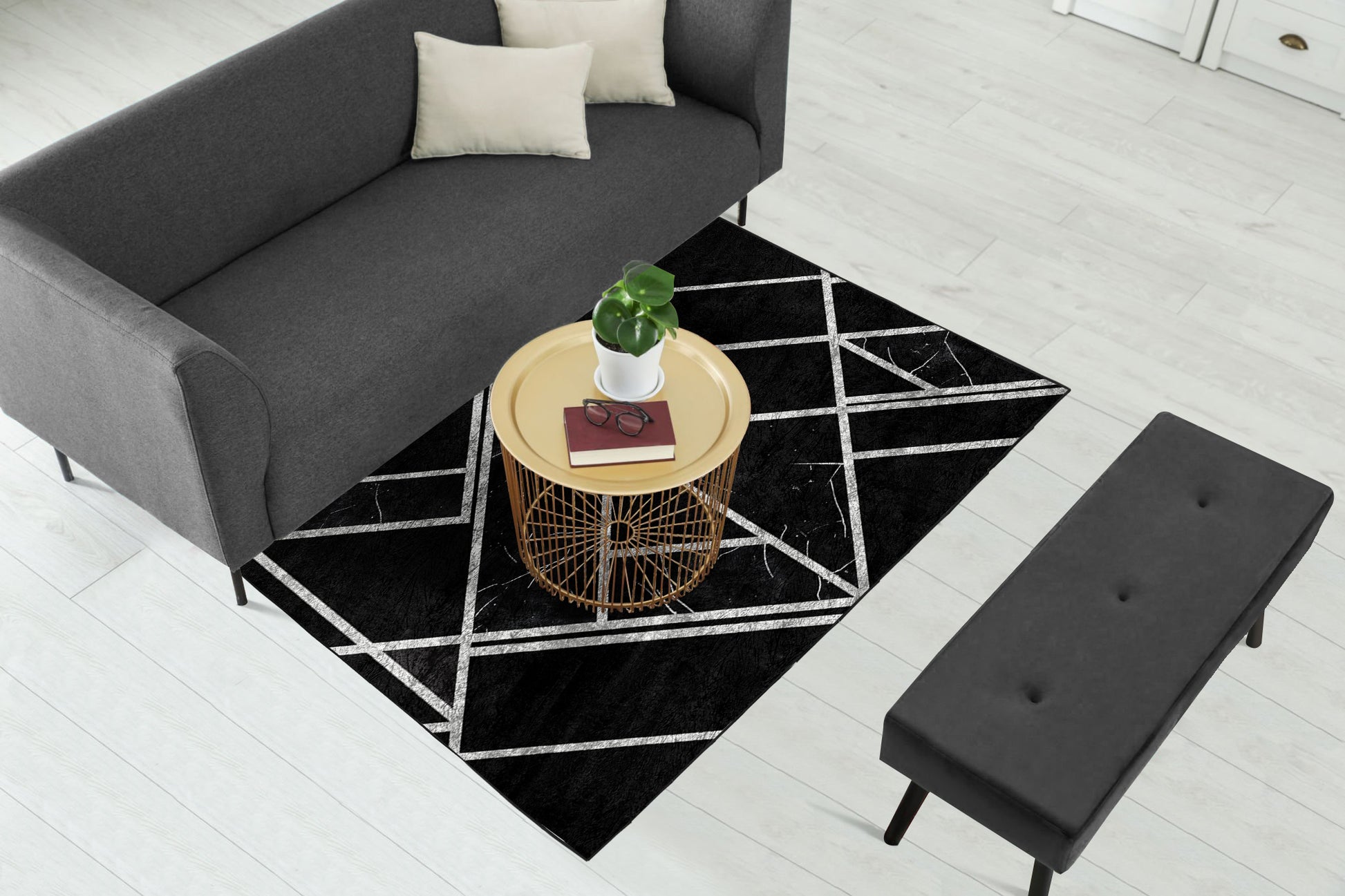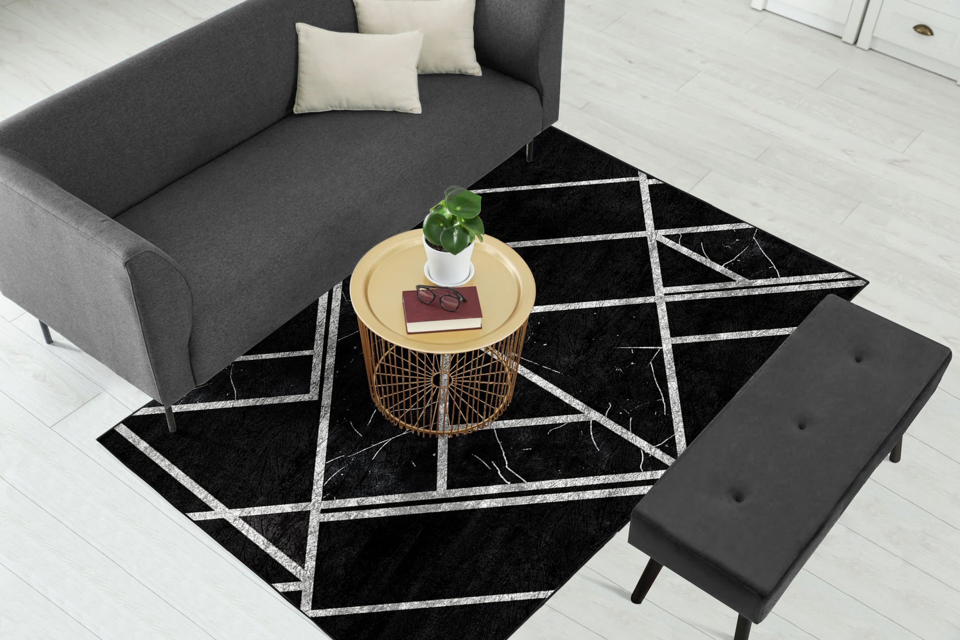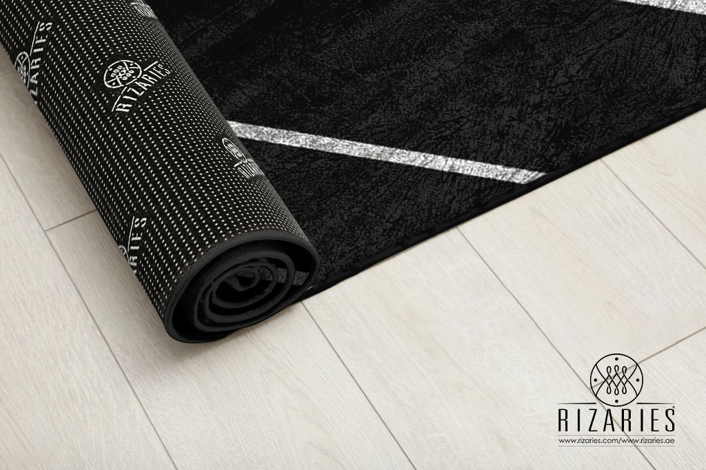 Black Silver Geometric Centerpiece (Rug)