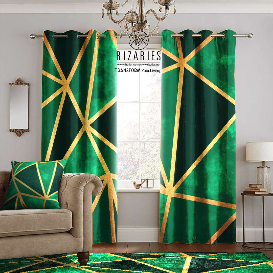 Green Geo Metallic Curtains
