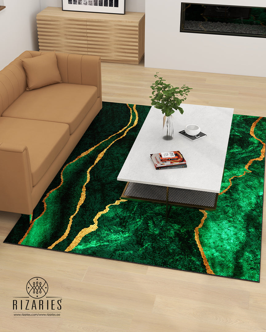Green Gold Abstract Centerpiece (Rug)