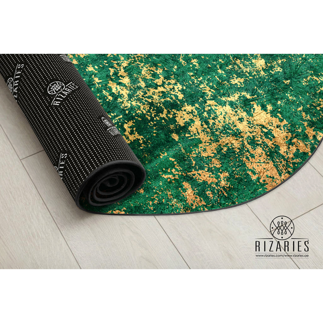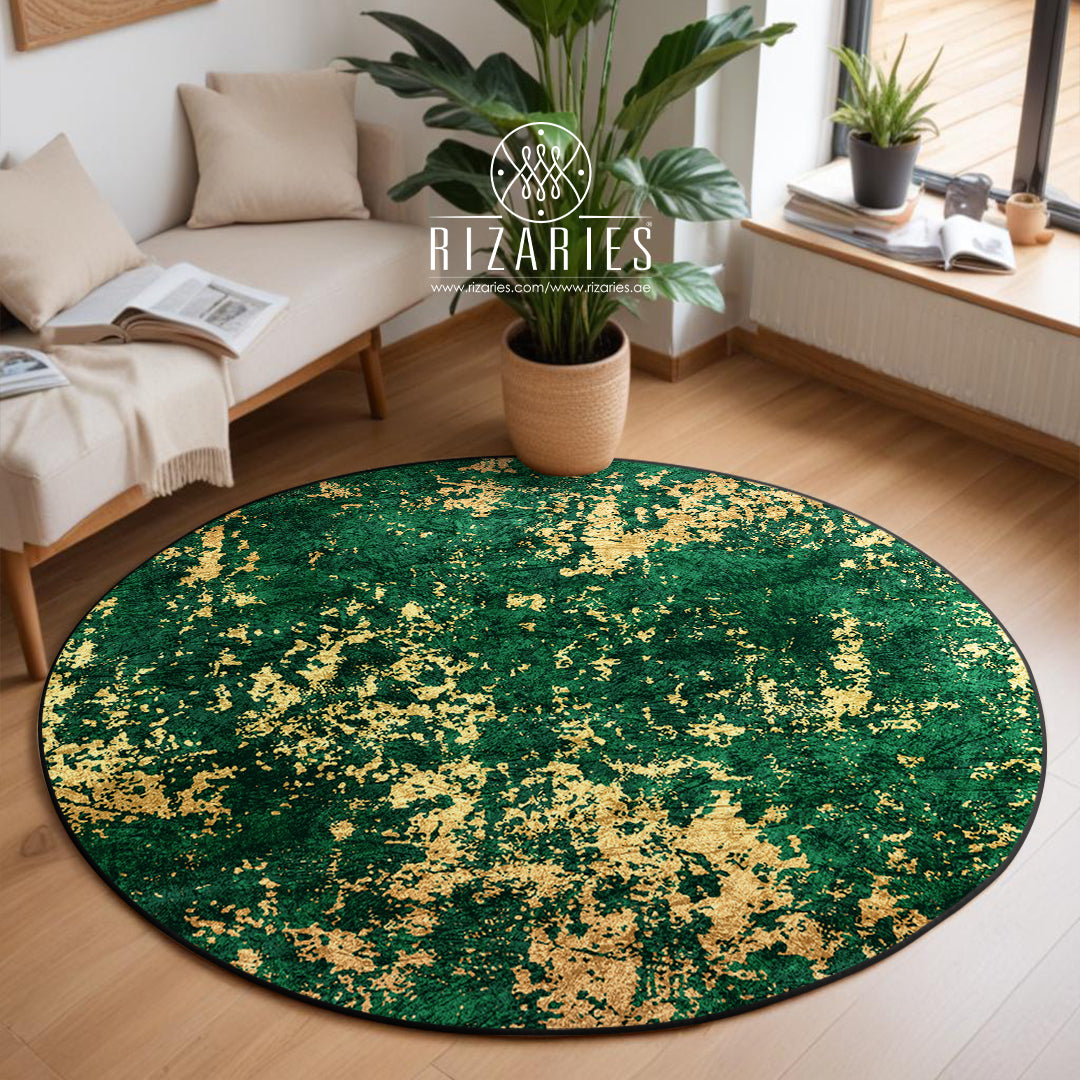 Green Gold Abstract Pattern Round Centerpiece (Rug)