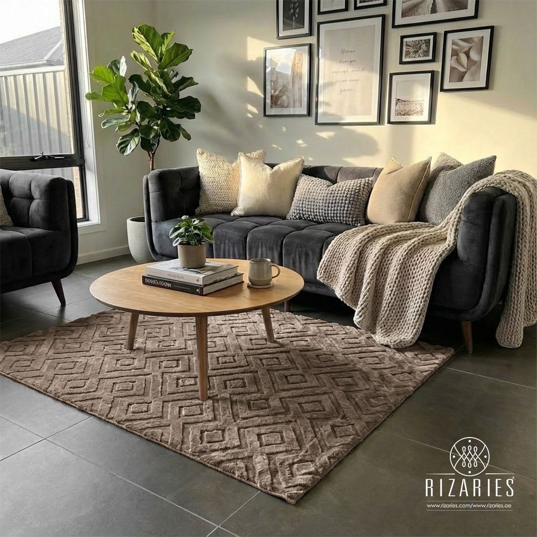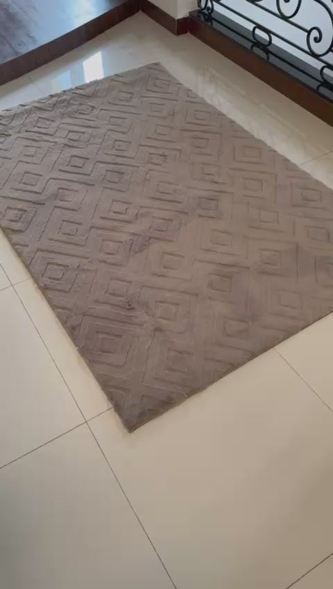 Add warmth and elegance to your home with our Luxe Textured Geometric Rug, crafted with a soft plush surface and a beautifully embossed geometric pattern. The rug features a durable canvas backing, making it lightweight and easy to move, perfect for styling living rooms, bedrooms, lounges, and offices.