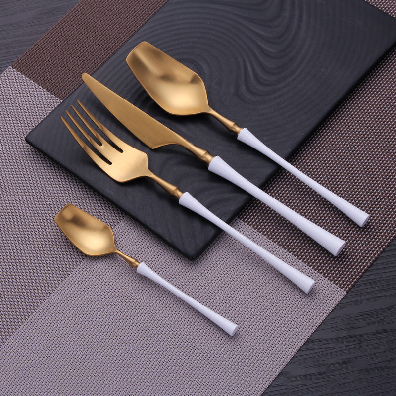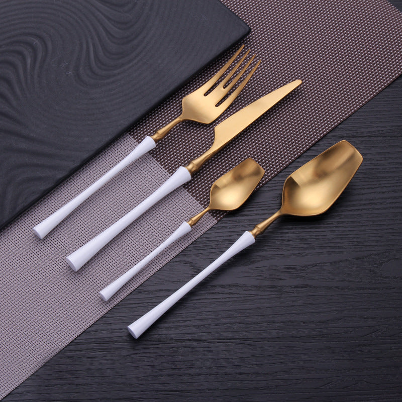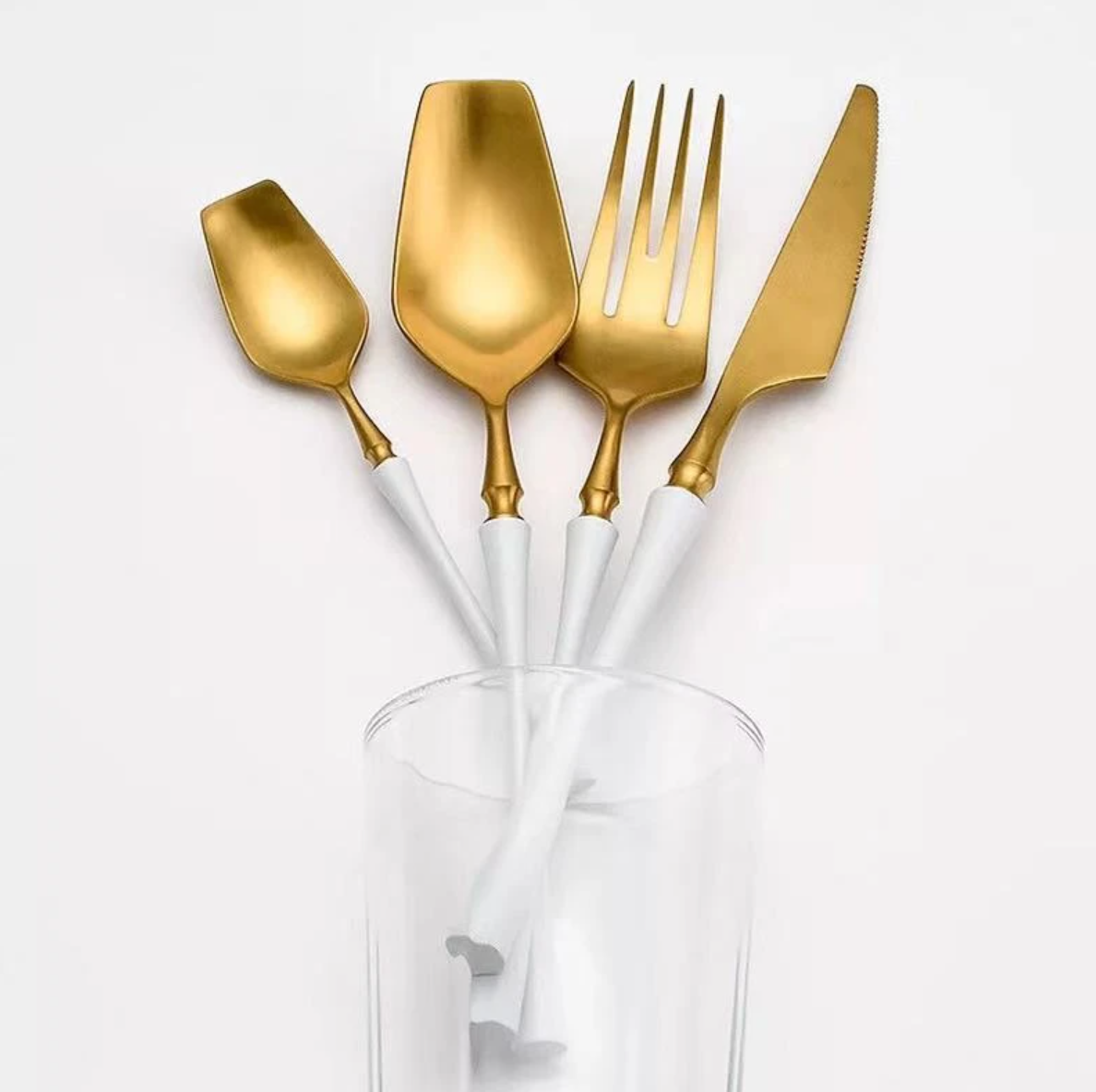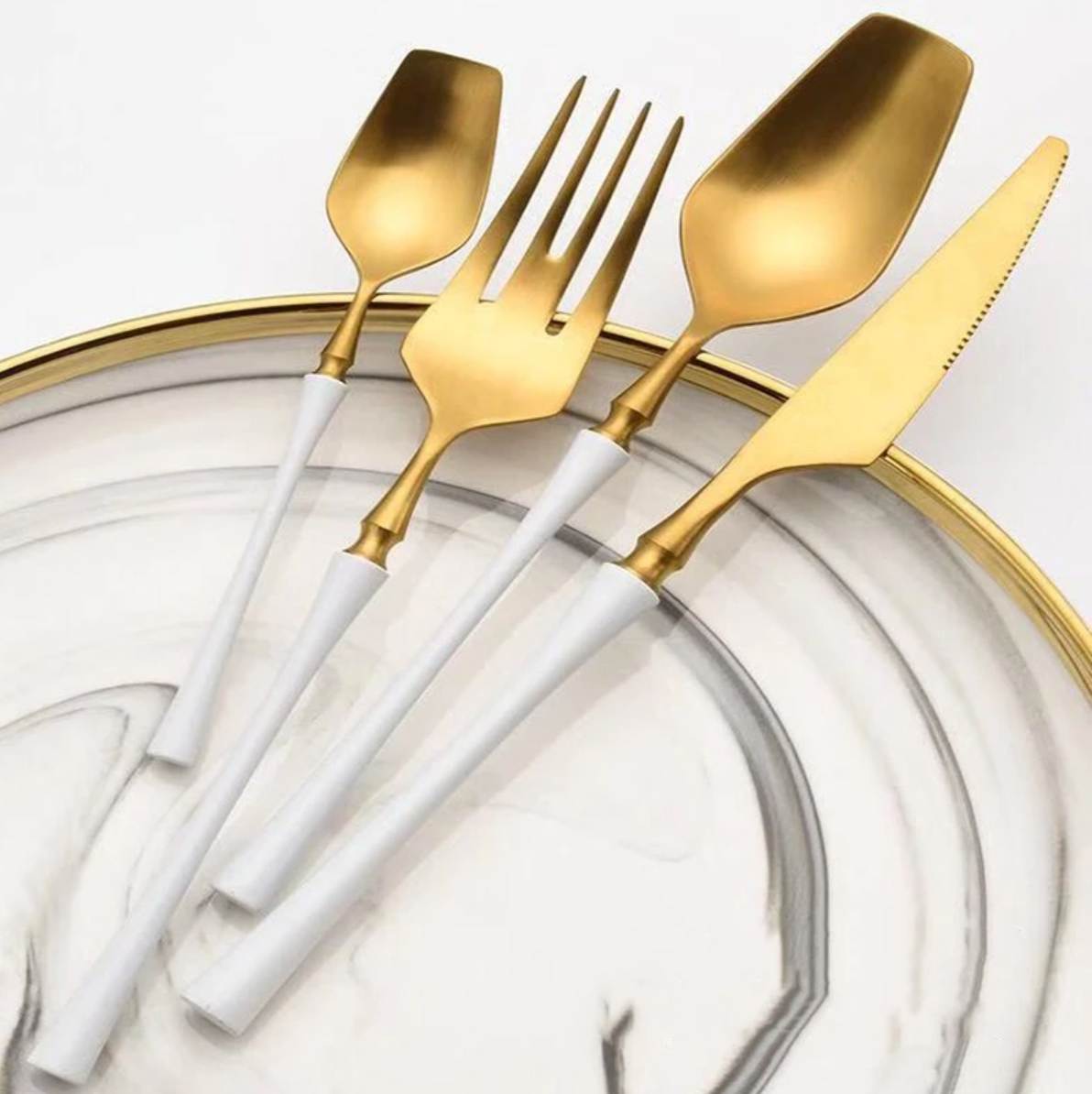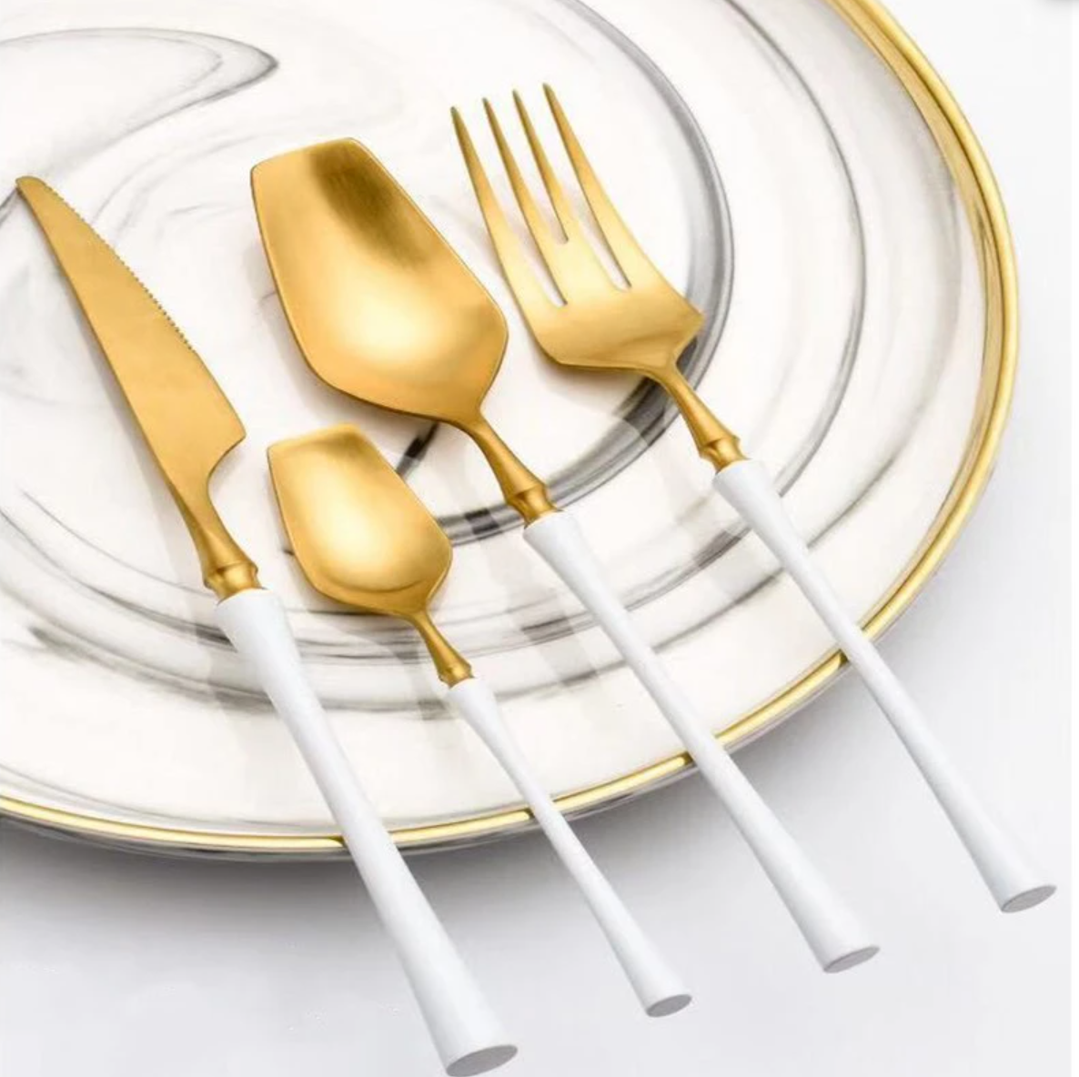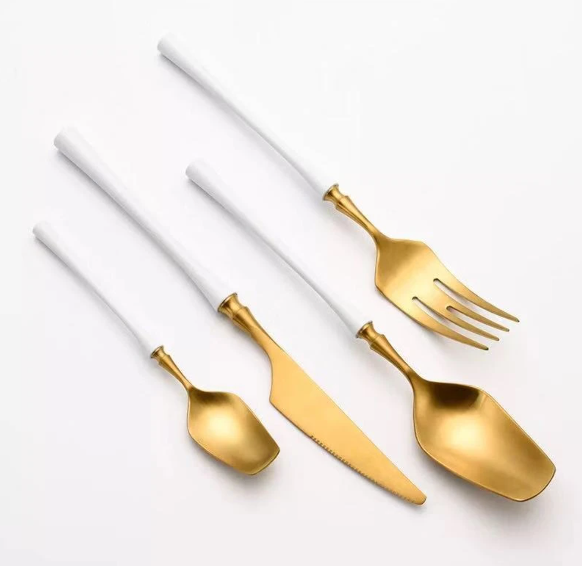 Gold & White Cutlery Set will give a Modern Look to your Living.