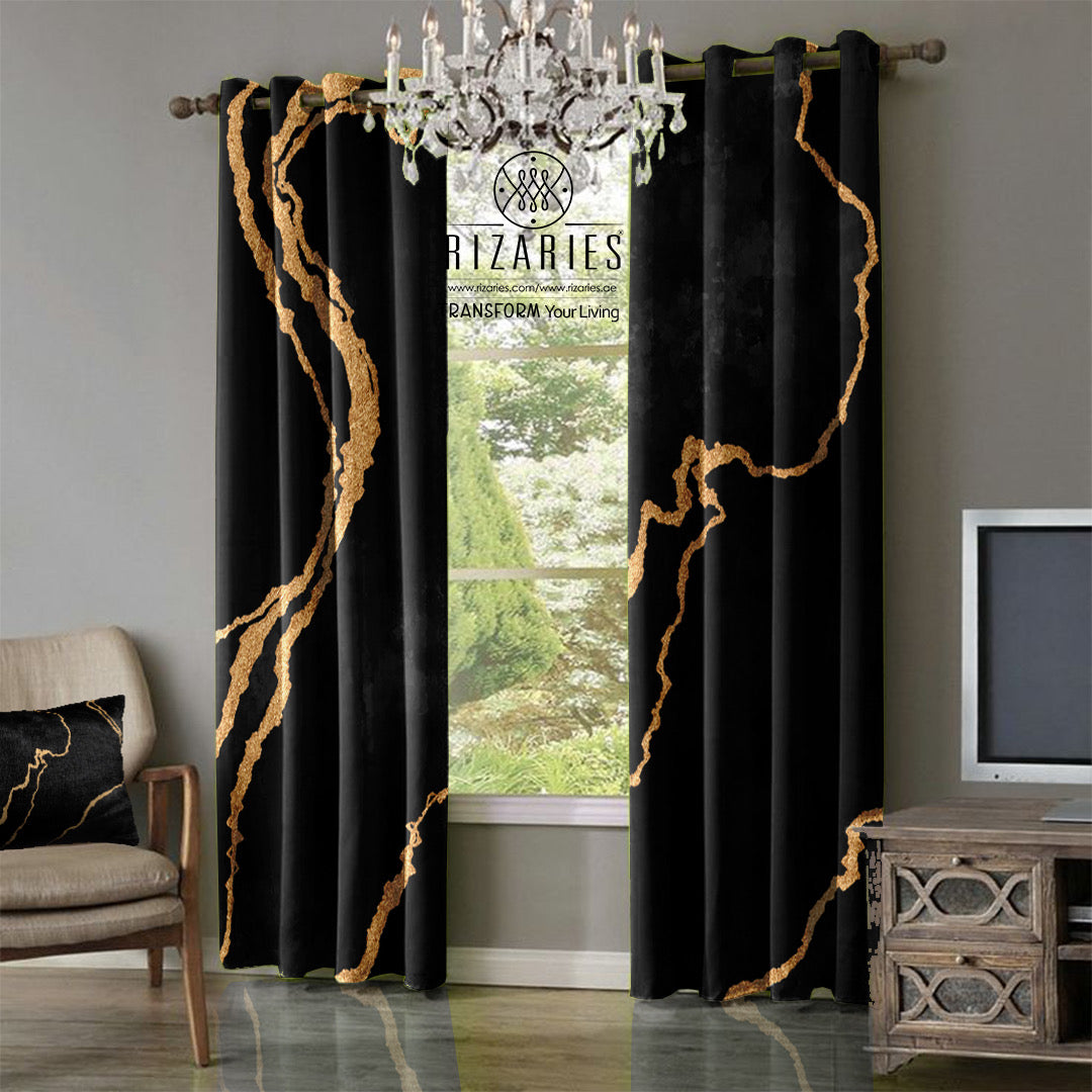 New Black Gold Abstract Curtains