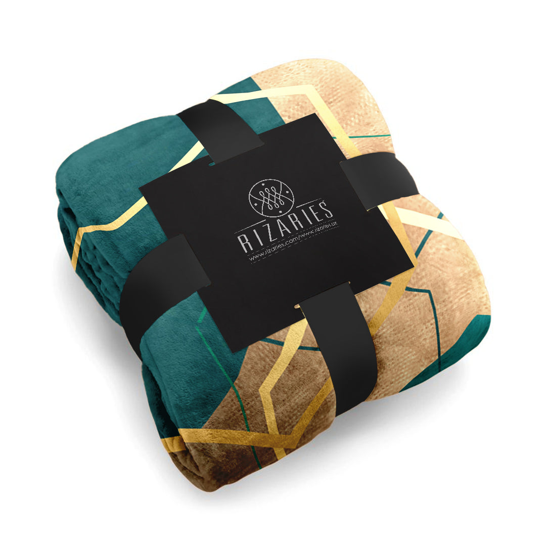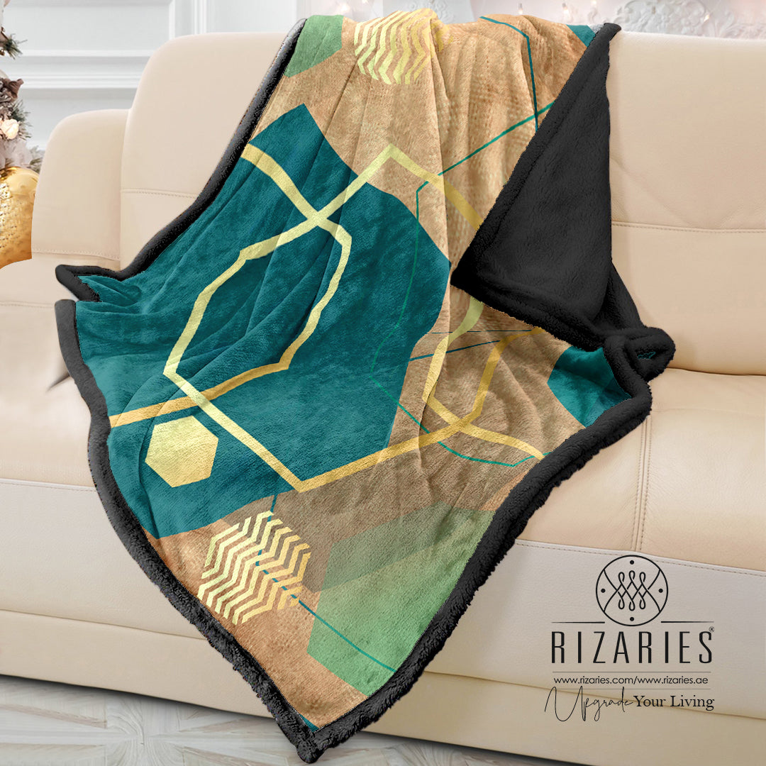Soft Emerald Copper Abstract Geo Sofa Blanket Throw