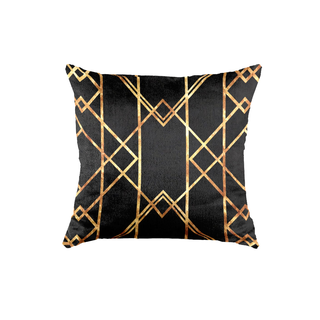 SuperSoft Black Gold Abstract Geo Throw Pillow. The longest, strongest and most durable Linens were used to weave these Cushions to ensure fabulous comfort and Design.