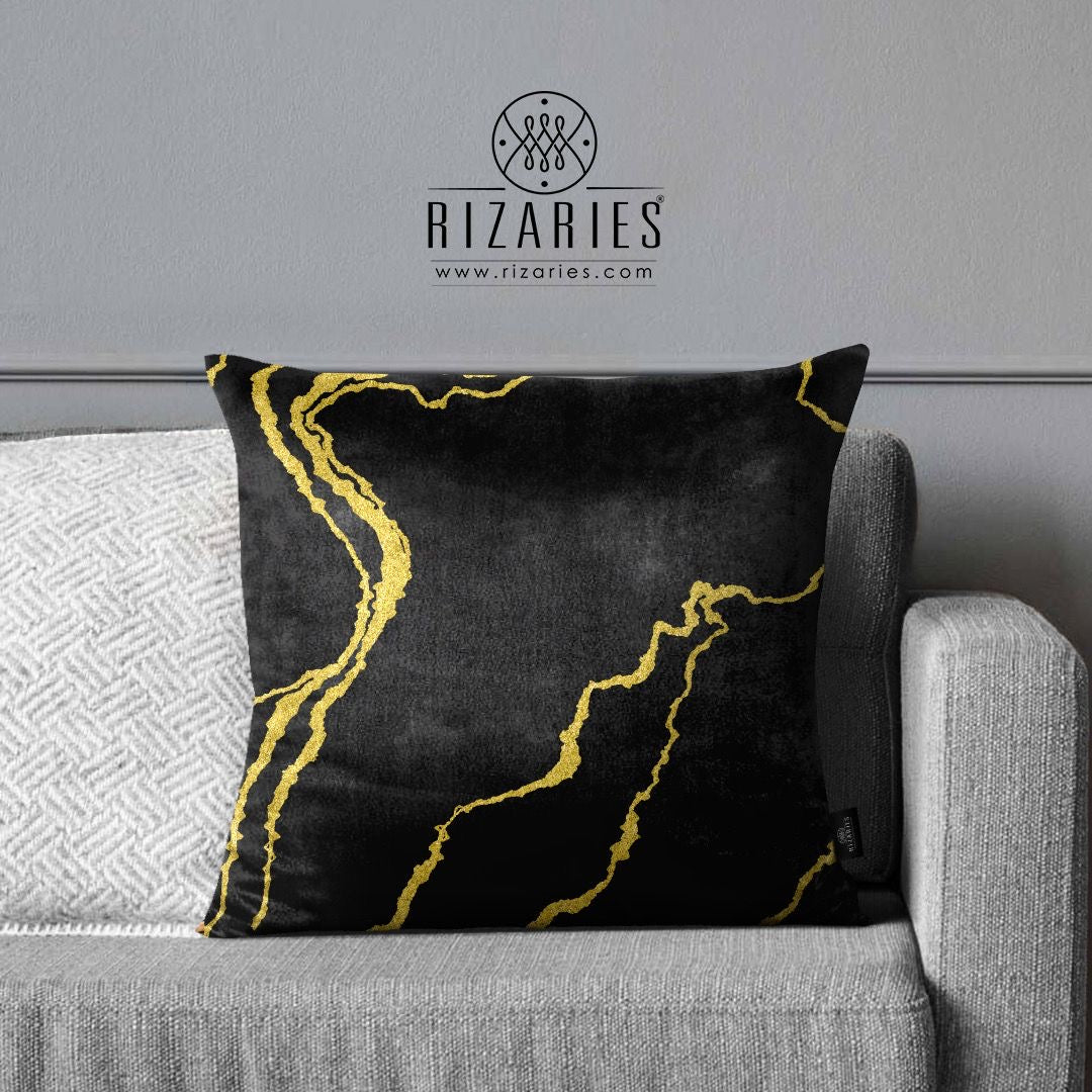 SuperSoft Black Gold Abstract Pattern Throw Cushion