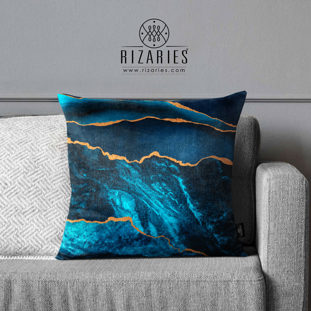 SuperSoft Teal Blue Gold Abstract Throw Cushion