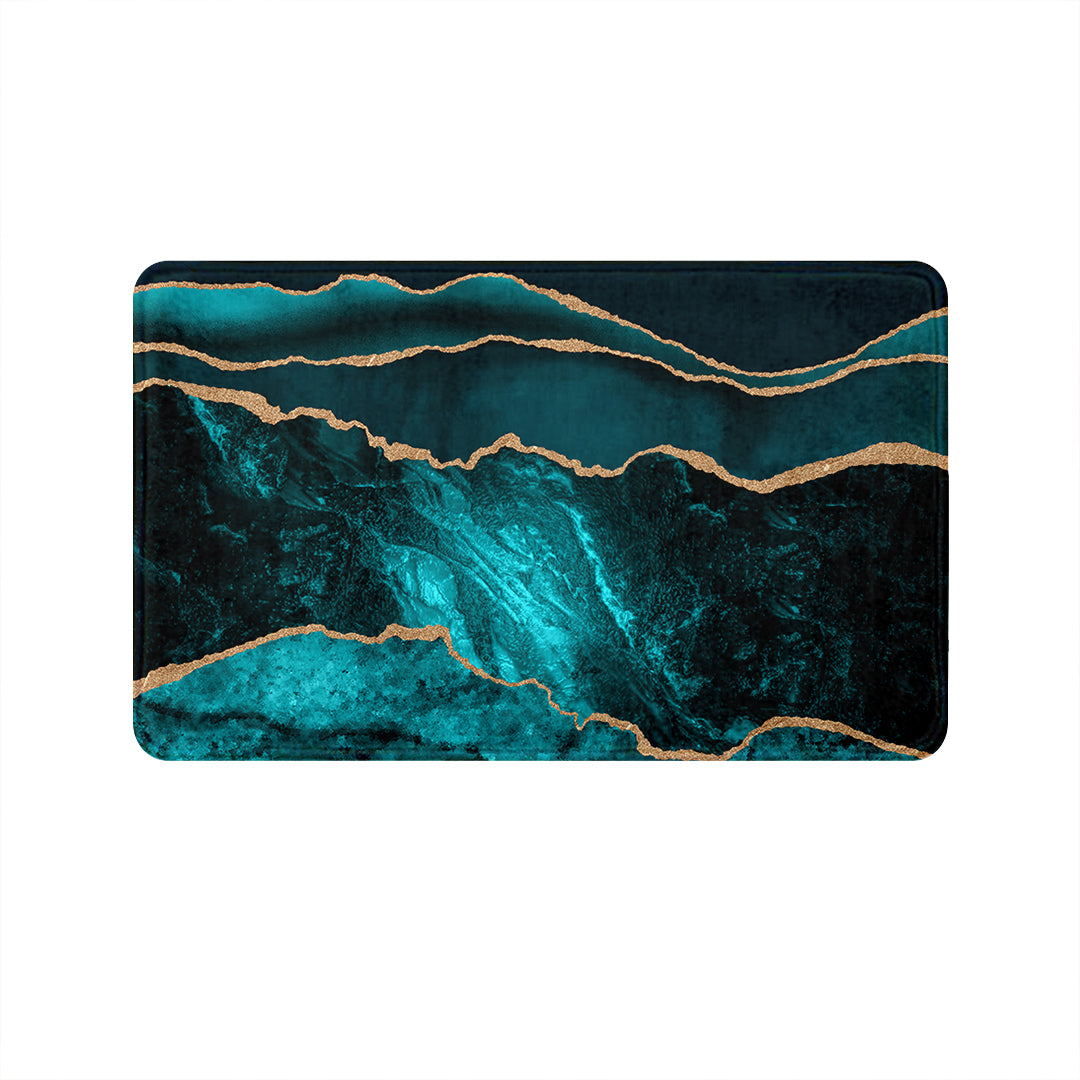 SuperSoft Teal Blue Gold Abstract Door Mat