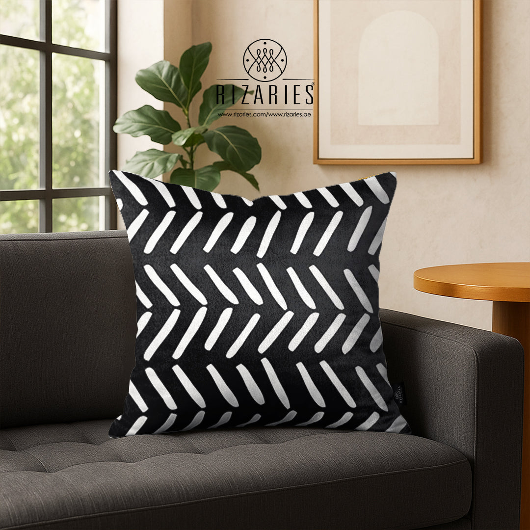 SuperSoft White & Black Uneven Throw Cushion