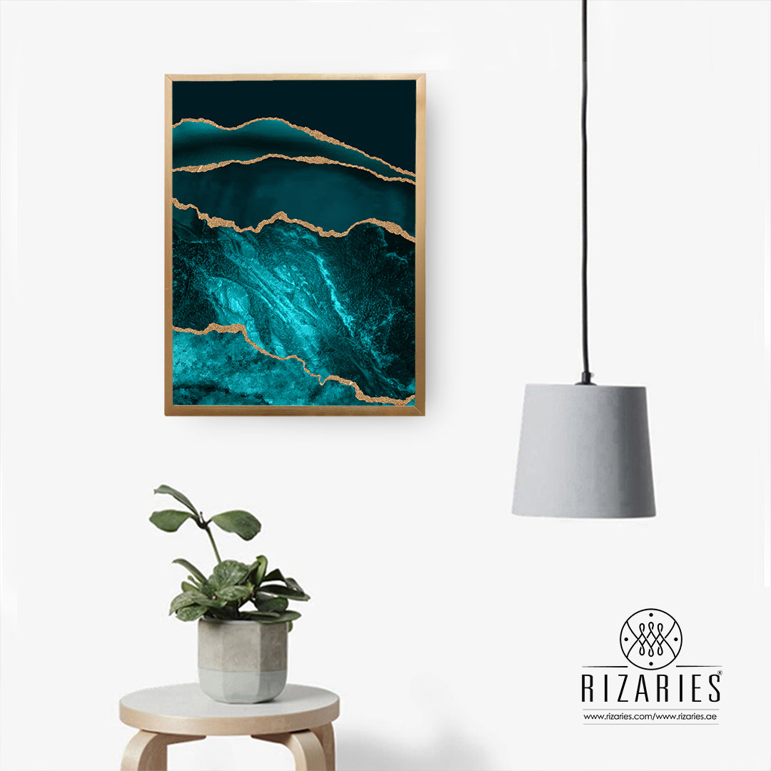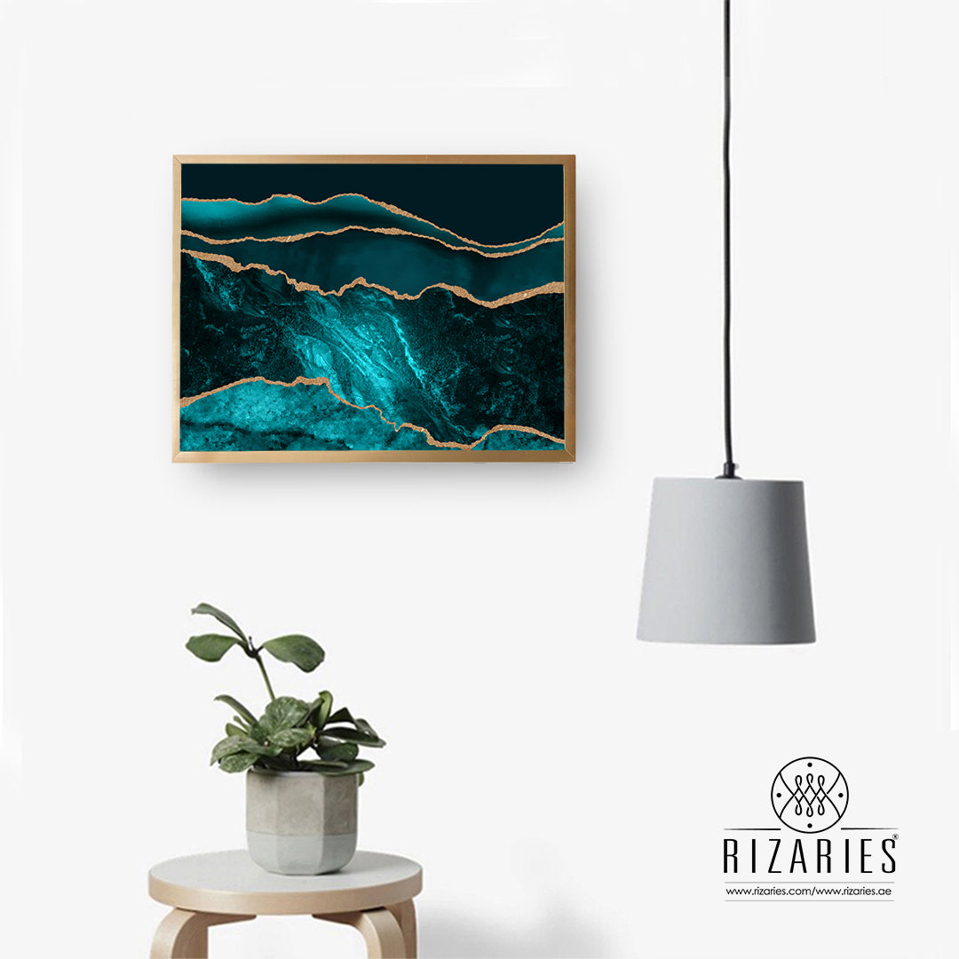 Teal & Gold CANVAS PAINTING by Rizaries is synonymous with simplicity, innovation and Decoration. An elegant and modern Design. A Beautiful Canvas Paintings for a Perfect look to your Living.