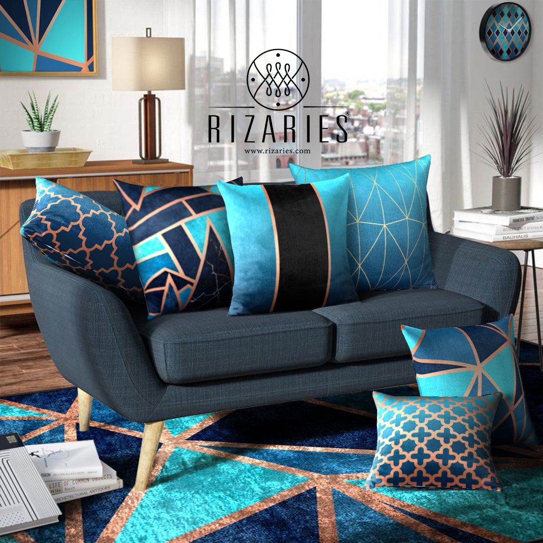 Teal Metallic Throw Cushions Set of 6